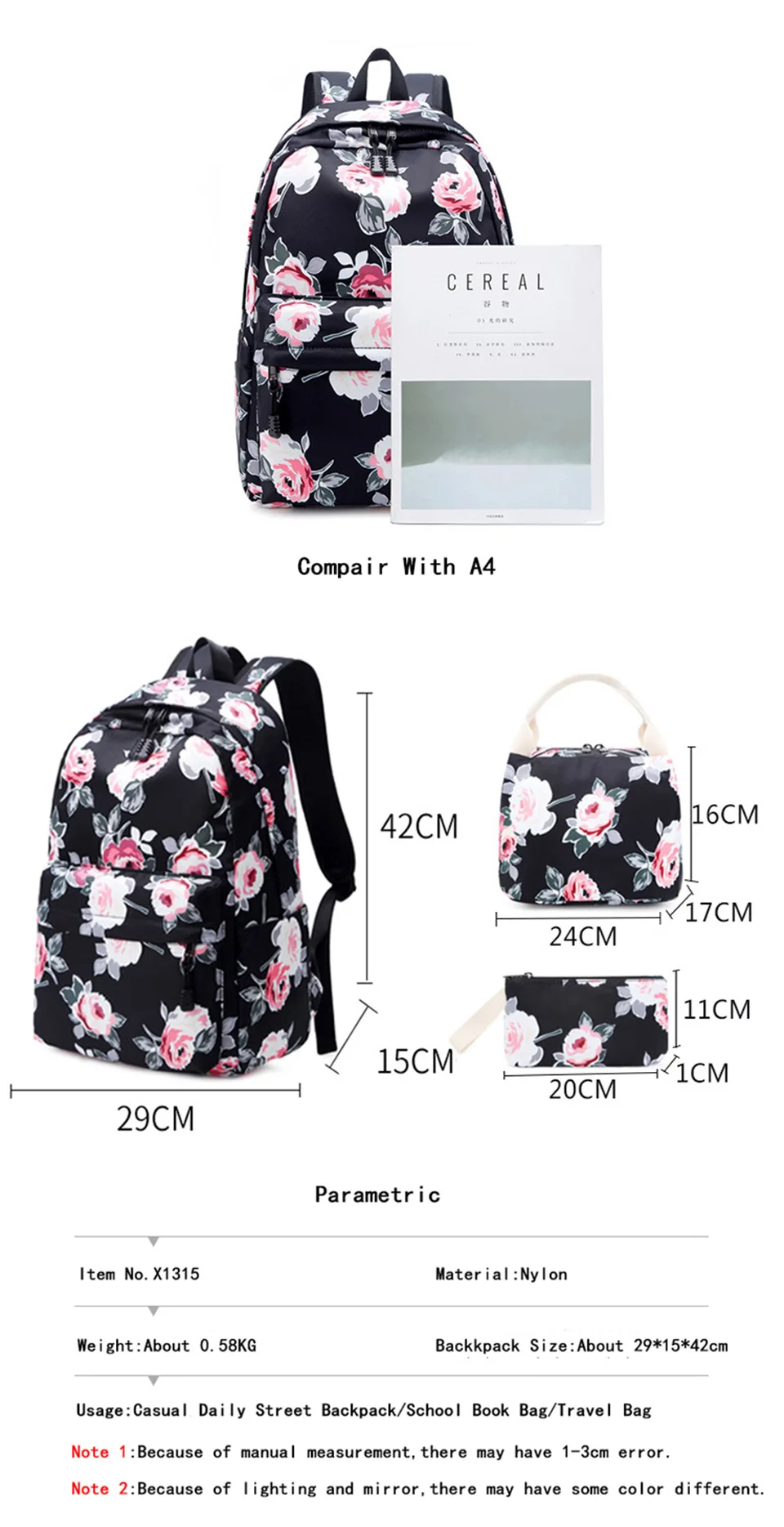 Backpack SizeAbout 29*15*42cm