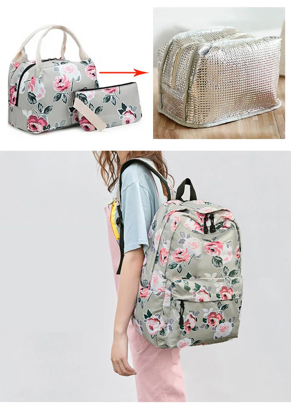 OKKID 3 шт.компл., школьная сумка с цветами, школьная сумка для дев...