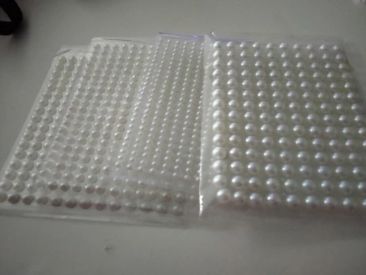 красивые полубусины, покупала для макияжа, на клее для ресниц будут держаться хорошо, прослойка клея на бусинке имеется, покупкой удовлетворена :)