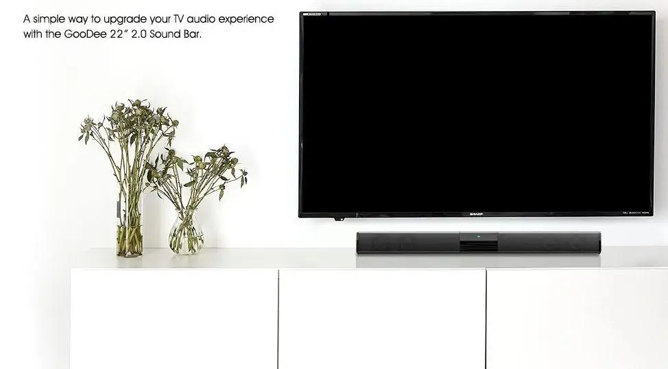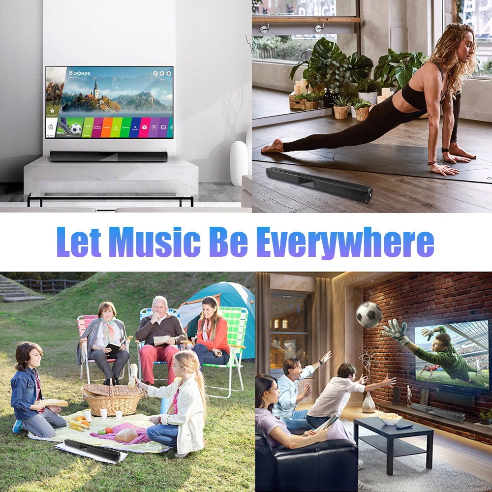 22 дюйма Длина звуковая панель с реверсивным звуковым со встроенной батареи, которая может воспроизводить музыку с погрешностью в пределах 2-х часов в режиме максимальной громкости костюмы для внутреннего и наружного использования. Подключите звуковую панель к телевизору с помощью одного из прилагаемых кабелей.