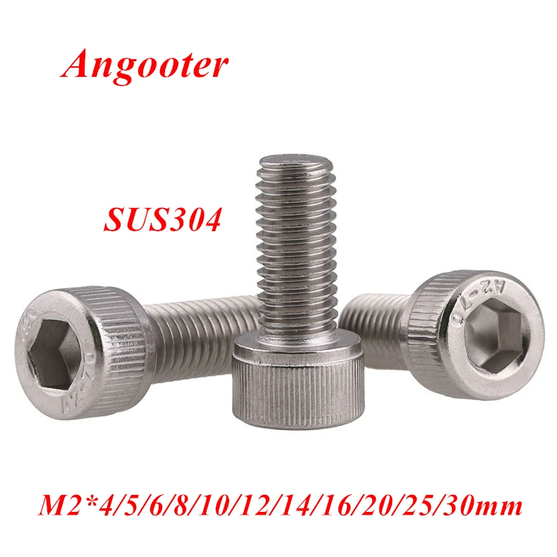 Винты с шестигранной головкой M2 DIN912, 50 шт., винты с шестигранной головкой из нержавеющей стали 304, винты с шестигранной головкой, винты с шестигранной головкой