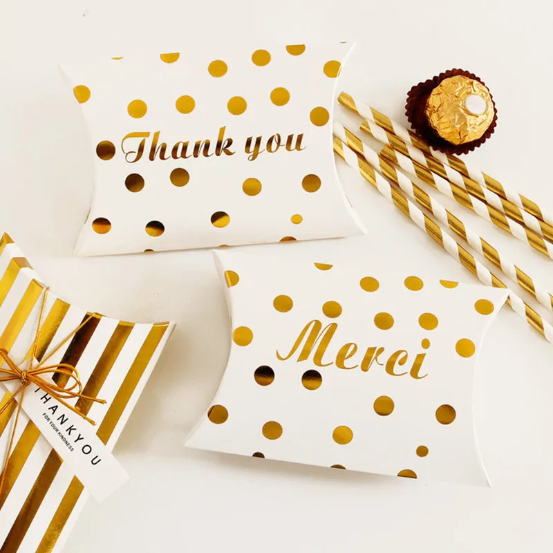 10 шт. высококлассная Золотая подушка в горошек "Merci" конфетная драга Подарочная коробка французский спасибо Свадебные сувениры Deco Mariage вечерние сумки