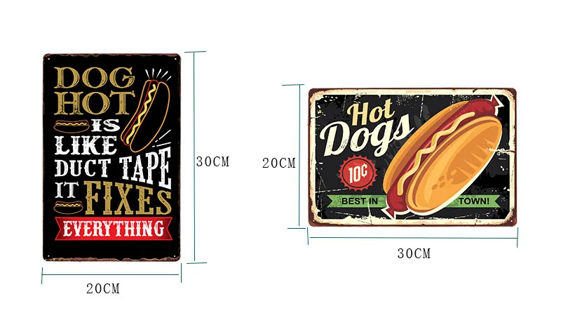 Хот-догов Ретро жестяной знак хот-дог винтажный металлический постер доска быстро Еда отеля магазин Настенный декор 20x30cm