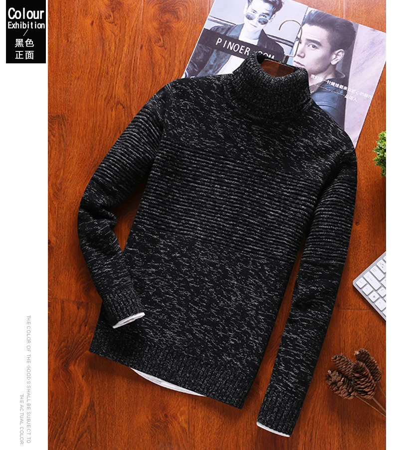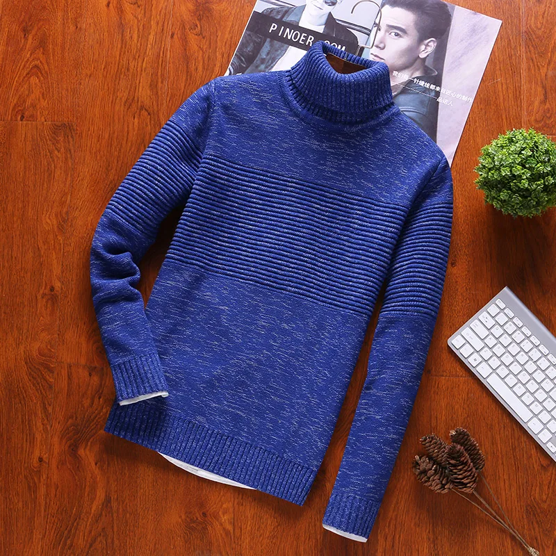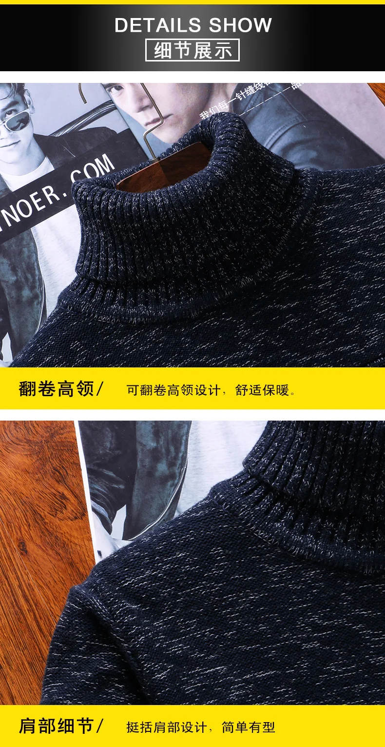 Мужской свитер с высоким воротником и круглым вырезом, из 100% хлопка