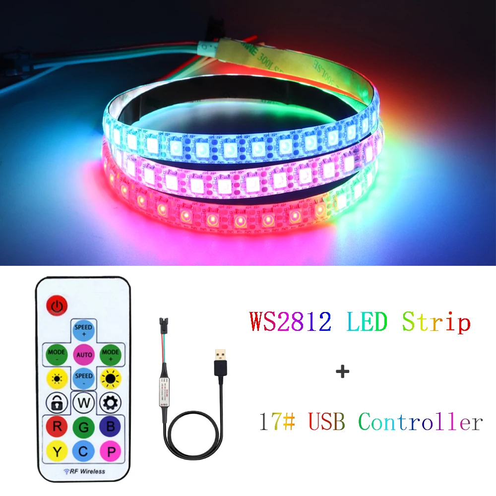 USB Светодиодная лента RGB WS2812B 17 клавиш пульт дистанционного управления адресная Пиксельная лента СВЕТОДИОДНАЯ ТВ Задняя часть под лампой шкафа DC5V 1m2m3m4m5m