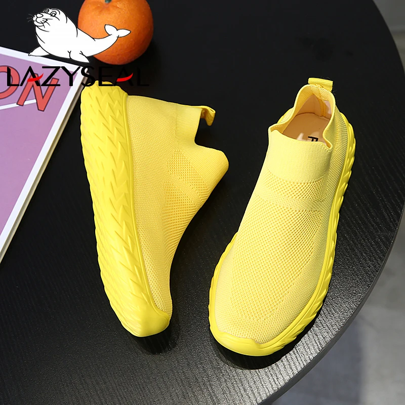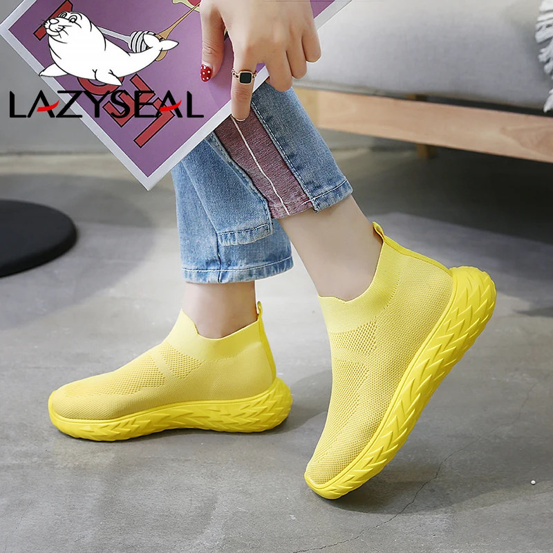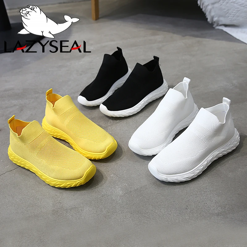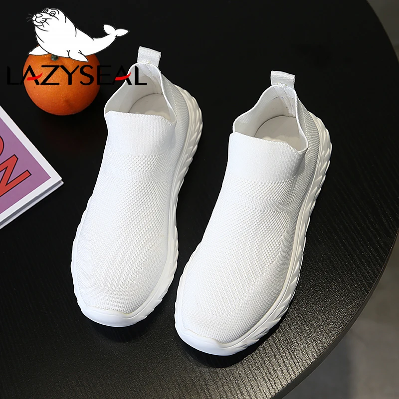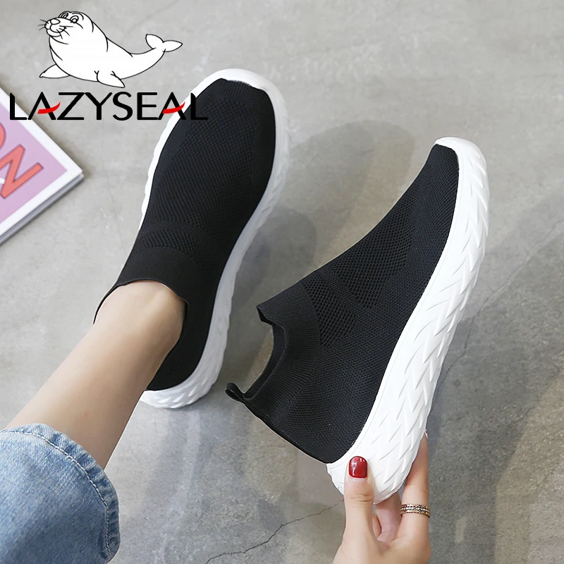 Женские сетчатые ботинки LazySeal, дышащие ботинки на платформе, с круглым носком, без застежек, на плоской подошве