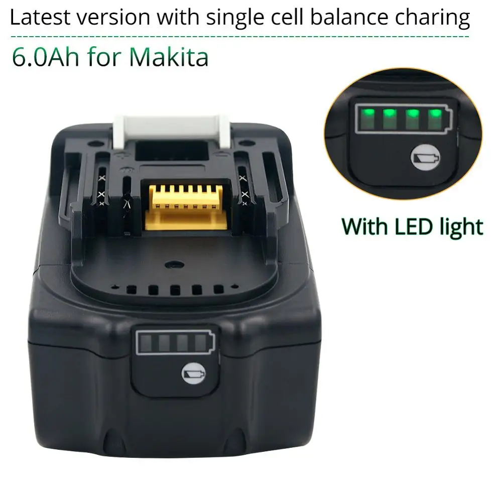 18 в 6000 мАч литий ионный Мощность инструменты Батарея для Makita 18V Батарея 6ah BL1860 LXT400 BL1840 BL1830 Перезаряжаемые batteria светодиодный индикатор ---Последняя версия с защитой баланса одиночных ячеек.