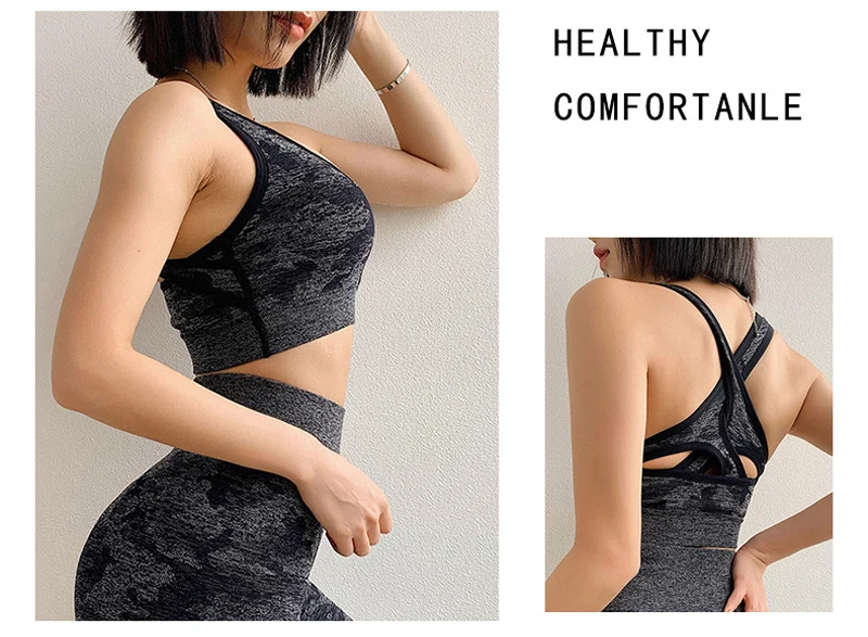 Камуфляжный бесшовный спортивный бюстгальтер, ударопрочный бюстгальтер для йоги, спортивный бюстгальтер пуш-ап, топ для фитнеса спортивный бюстгальтер, Спортивная Женская Спортивная одежда для тренажерного зала