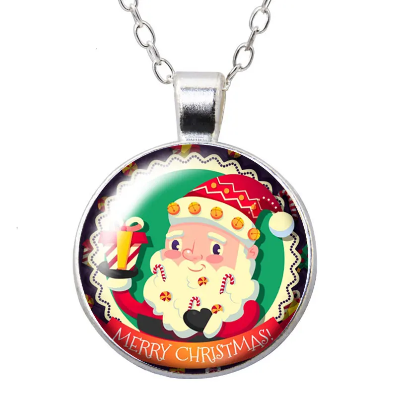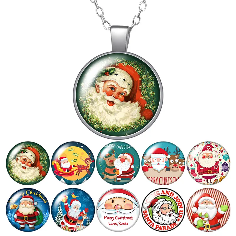 Рождественский снеговик олень Санта Клаус круглый кулон ожерелье 25...