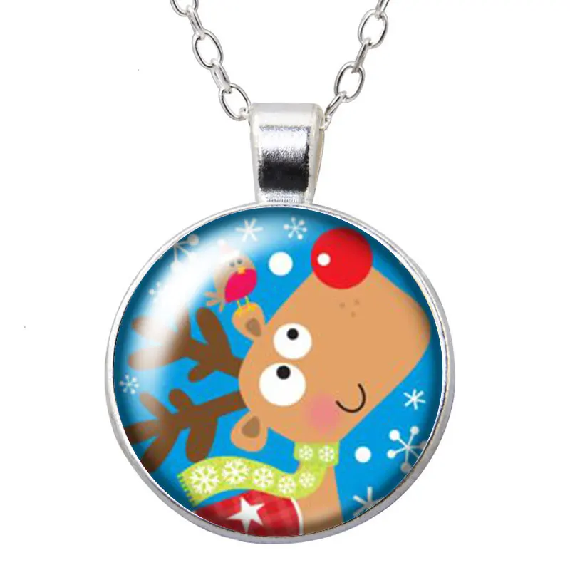 Рождественский снеговик олень Санта Клаус круглый кулон ожерелье 25 мм стеклянный кабошон женские ювелирные изделия для девочек вечерние подарок на день рождения 50 см