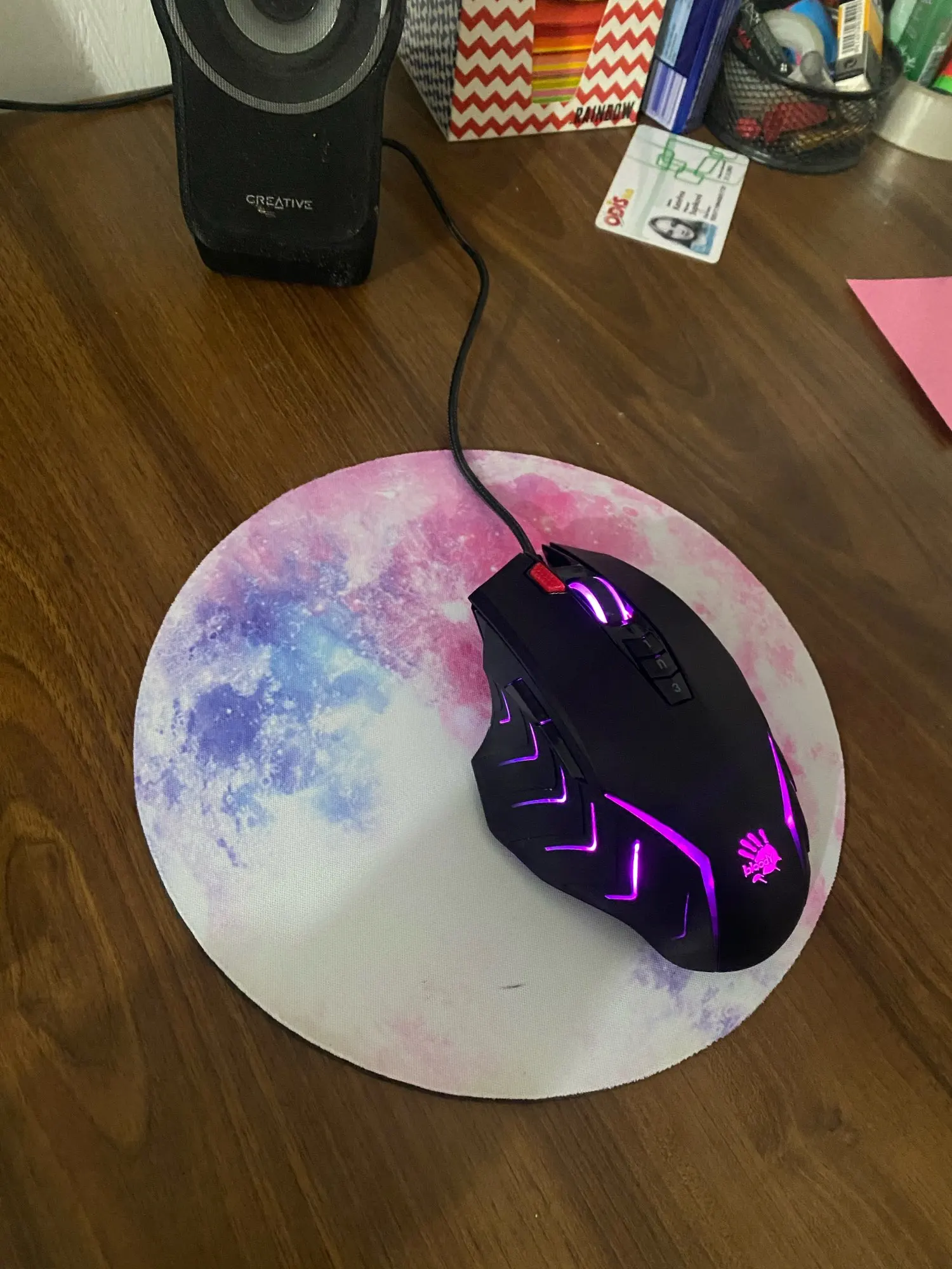 Пришел быстро, около месяца, но перестал отслеживаться после прибытия в страну. Как человек не самый опытный, расстроилась даже, но все оказалось нормально. Мышка "катается" спокойно, не застревает, приятный на ощупь материал. Само изображение могло быть чуть ярче, но это лишь маленькая придирка)