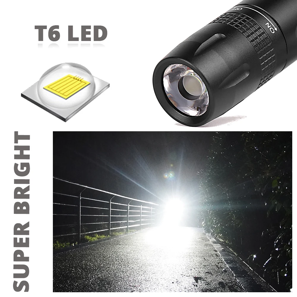 Миниатюрный сверхяркий светодиодный фонарик с лампой T6, водонепроницаемый фонарь с питанием от батареи AA, подходит для использования на открытом воздухе