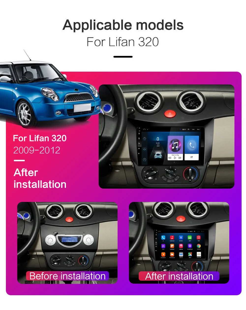 Для Lifan Smily 320 2008 2009 2010 2011 2012 2013 2014 20151. Операционная система Android может установить приложение Google Play store Skype Facebook youTube Twitter и т. Д.2, 4-х ядерный конфигурация включает в себя (Оперативная память + Встроенная память): 1 Гб + 16 ГБ/2 ГБ + 16 ГБ/2G + 32G [дополнительно]3, 8-ядерный конфигурация включает в себя (Оперативная память + Встроенная память): 7260-2G + 32G/7260-4G + 64G/7260-6G + 128G/7260-8G-128G/ 4G-SIM-5760-2G + 32G/4G-SIM-5760-4G + 64G/4g-sim-657128 +/4G-SIM-5760-8G + 128G [опционально]4, 4-ядерный содержит: версия: Android 8,1Разрешение: HD 2.5D,1024*600; Не поддерживает функцию AM и RDS;5, 8-ядерный содержит: Android 10;Ядер заключаются в следующем: 4-х ядерный Процессор и 4-х ядерный графический процессорПоддержка встроенных функций carplayРазрешение: HD 2.5D,1280*720Версия 7260-WIFI: поддерживает функции DSP, FM, RDS , HIFI, сплит-экран, фронтальная и задняя двойная запись и 360 панорамная камера; Не поддерживает видеовыход;4G-SIM-5760-WIFI версия: поддержка s DSP, FM, RDS, HIFI, 36EQ, сплит-экран, двойная запись спереди и сзади и 360 панорамных функций камеры; Не поддерживает видеовыход;6. Поддержка: радиостанция, Bluetooth Вызов, Bluetooth музыка, управление рулевым колесом, встроенный WiFi, MP3, видео музыка (MPG, AVI), навигация, видеовыход, зеркальная связь, USB 4G LTE WIFI ключ и другие функции; Поддержка выбора логотипа автомобиля; Sfactory пароль: 8888