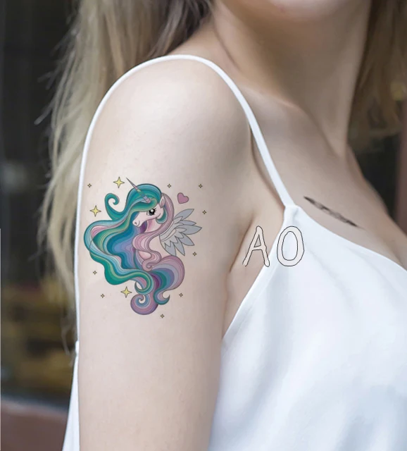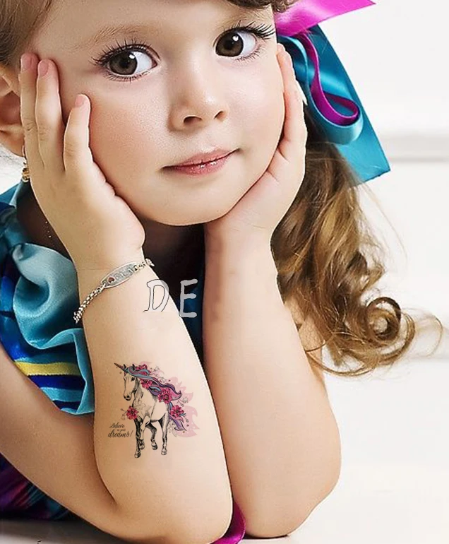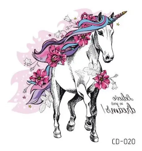 Временная татуировка унисекс, временная татуировка единорога, лошадь, цветок, водонепроницаемый, флеш-тату