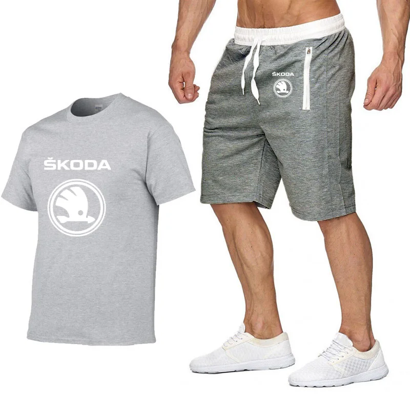 Футболка мужская с коротким рукавом и логотипом Skoda, тенниска в стиле Харадзюку, хлопковая рубашка с коротким рукавом и шорты, костюм спортивная одежда, лето