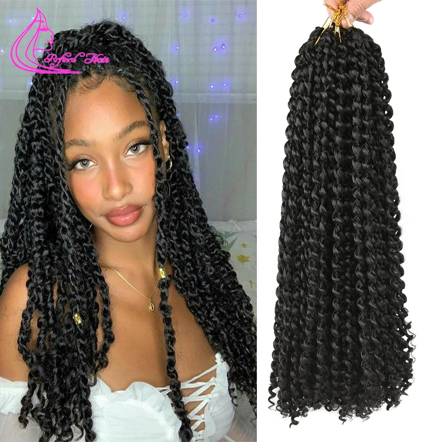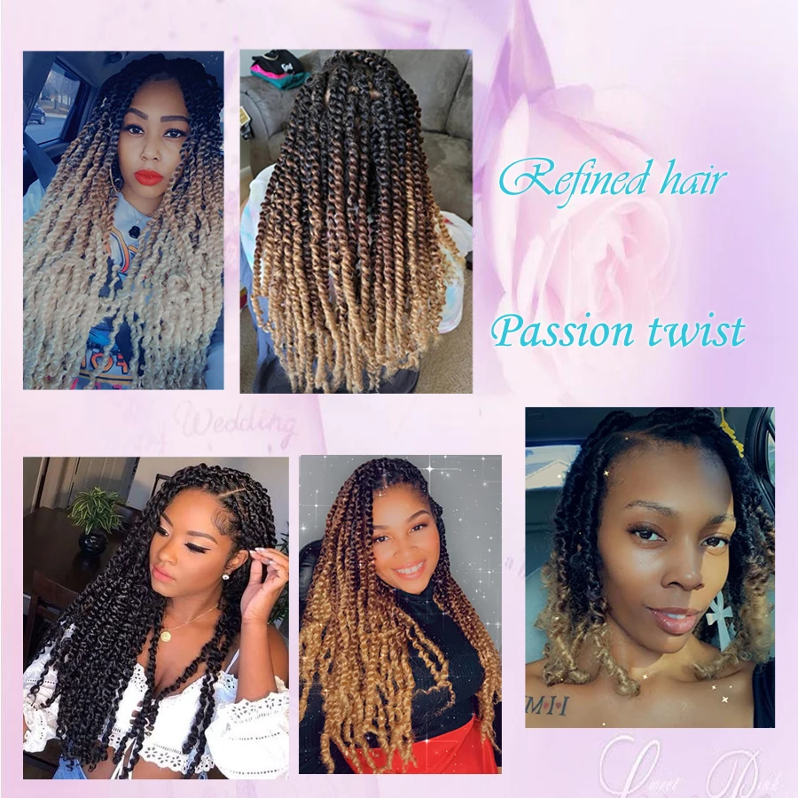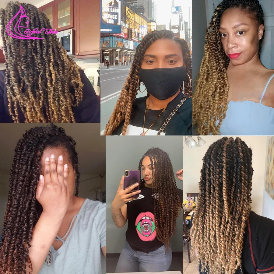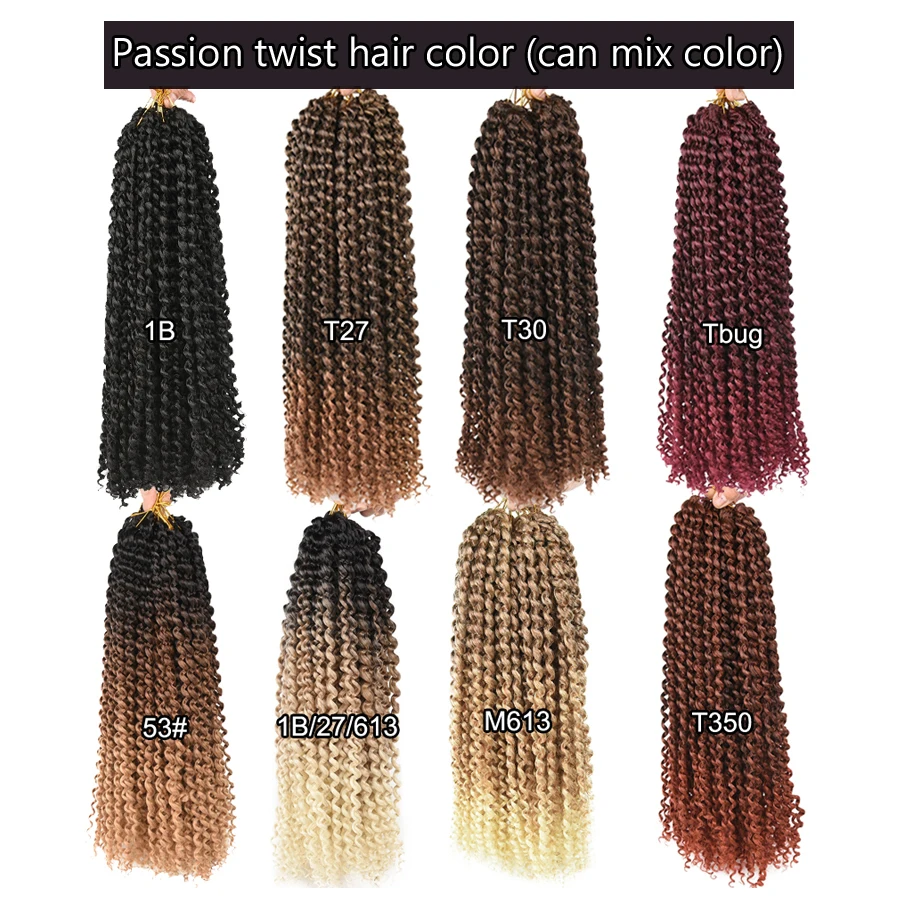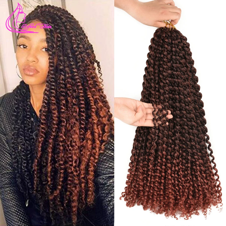Косички для плетения крючком Passion Twist 14, 18, 22 дюйма, длинные черные, коричневые, Омбре, весенние волнистые синтетические кудрявые волосы для плетения бабочек