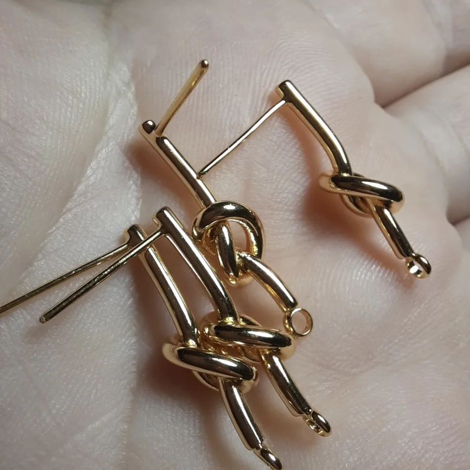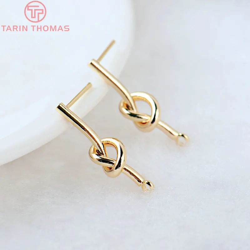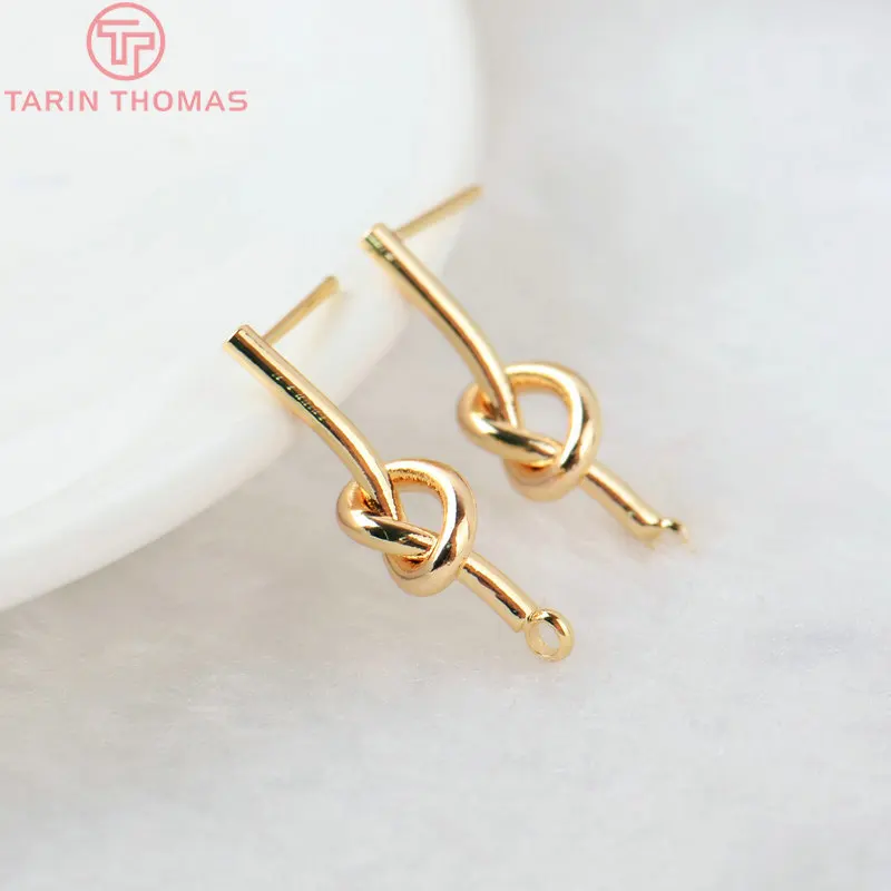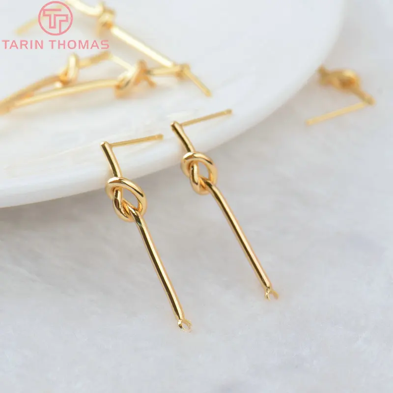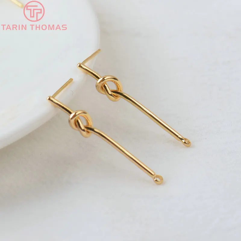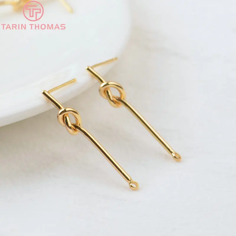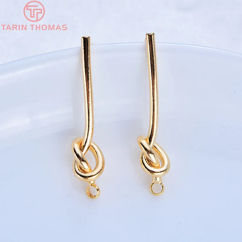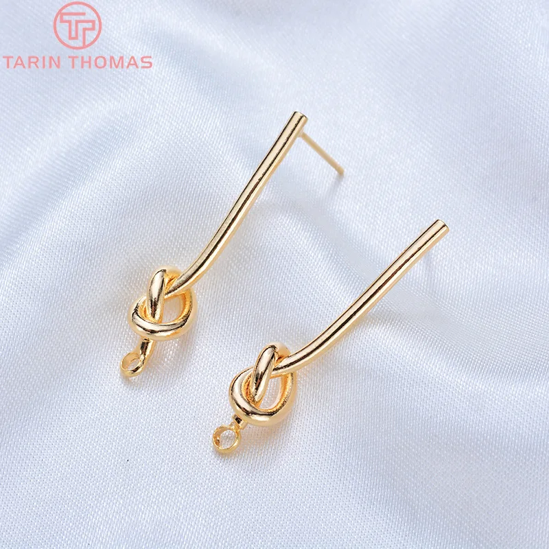 Серьги-гвоздики с узелком, латунные длинные покрытые 24-каратным золотом, 4 шт., 27 мм, 35 мм, фурнитура для изготовления ювелирных изделий своими руками