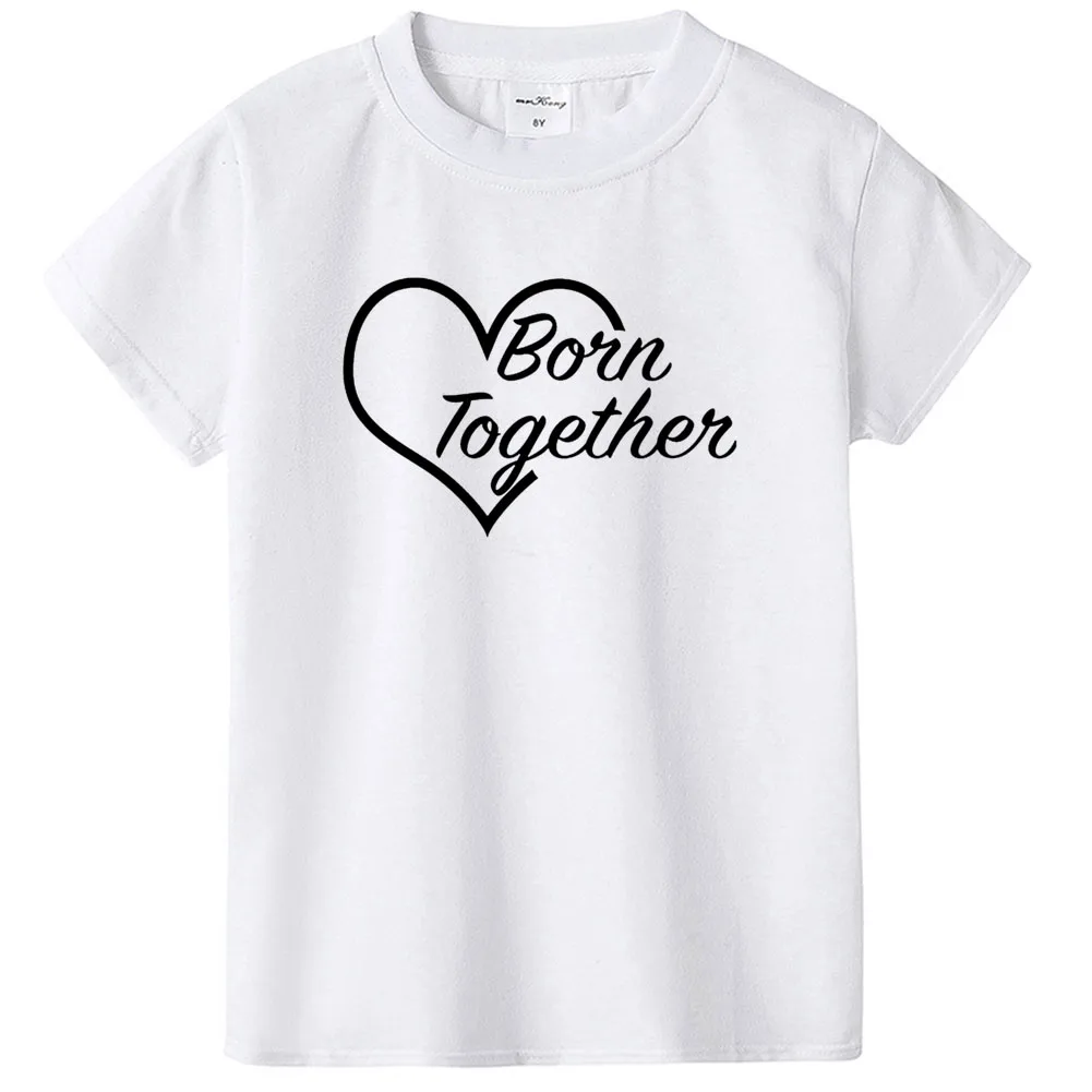 Футболка детская с коротким рукавом, рубашка с надписью Born Together Friends Forever White, топ для малышей, одежда для близнецов, на лето
