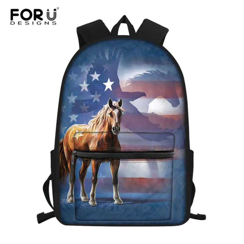 Набор школьных сумок FORUDESIGNS с черной лошадью для подростков, мальчиков и девочек, милый школьный портфель для детей младшего возраста, Подарочный рюкзак для книг