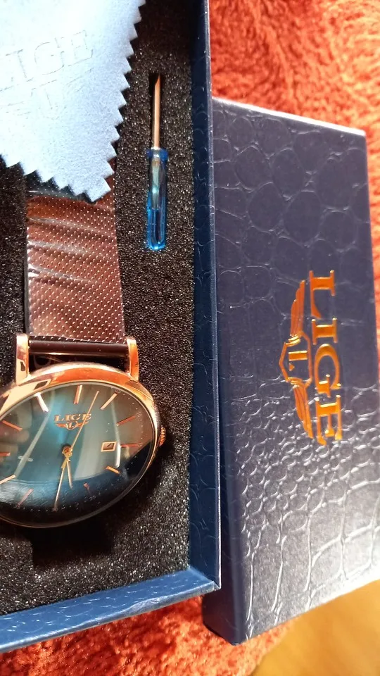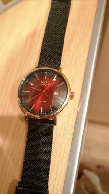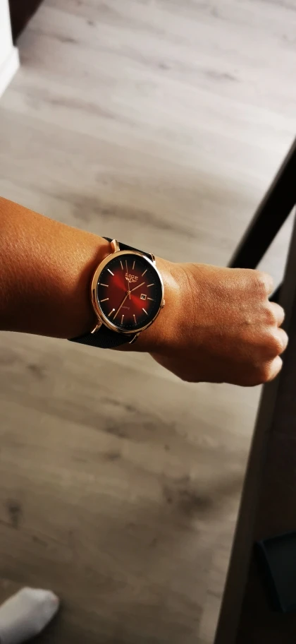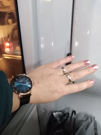 В описании часы ультратонкие, на самом деле они даже не средней толщины, а реально толстые. Оставила, не хочется заморачиваться с возвратом. Очень красивый цвет циферблата.