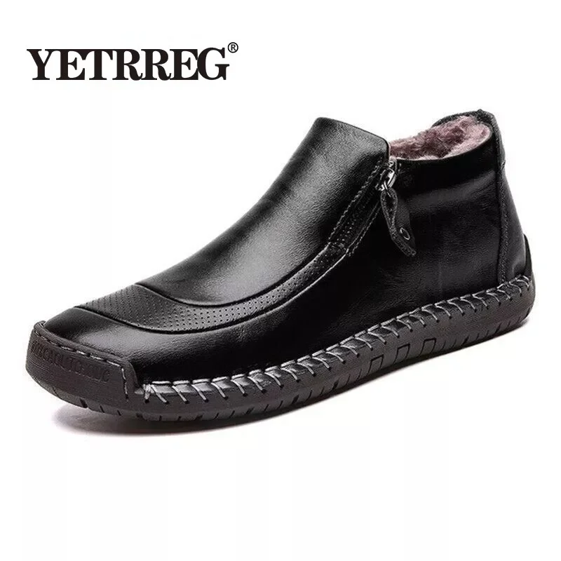 Мужские зимние ботинки из высококачественной кожи и плюша, теплые м...