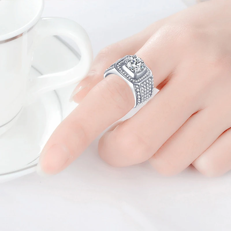 Мужское обручальное кольцо с бриллиантом 4ct Sona, 925 пробы Серебр...