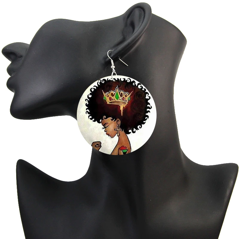 SOMESOOR, двусторонняя печать, африканская девушка, натуральные волосы, деревянные висячие серьги, африканская корона, Черная Королева, мощность борьбы, хип-хоп, ювелирные изделия