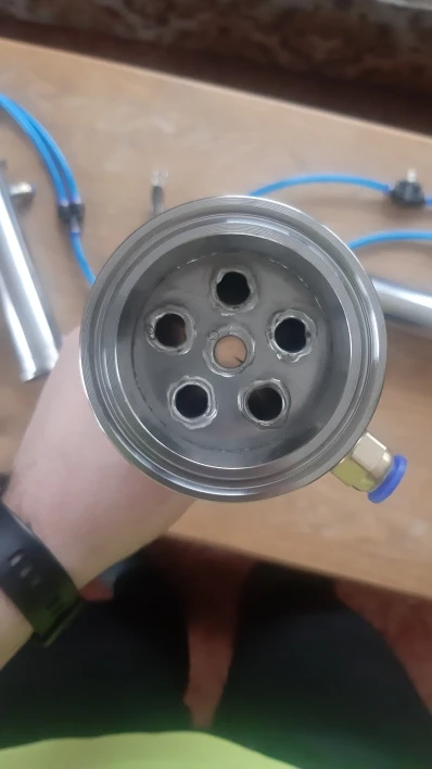 продавец молодец, обговорили ивойс, сделал правильный, не пришлось платить лишнего! доставка была DHL, приехало за неделю, хотя брал самую дешевую, от продавца! по колонне конечно есть замечания, но за эту цену в целом отлично,порадовала прегородка в царге, правда сама царга из тонкостенной трубы, меньше мм, фланцы толще, на фото видно, Из-за этого и замин на царге. швы наружние 3+, не полированые, внутренние грубые, но на процесс вообщем то не влияет. подводка ПВХ шланги 8*5, штуцера на колонне резьба 1/8.трубки внутренние 8мм