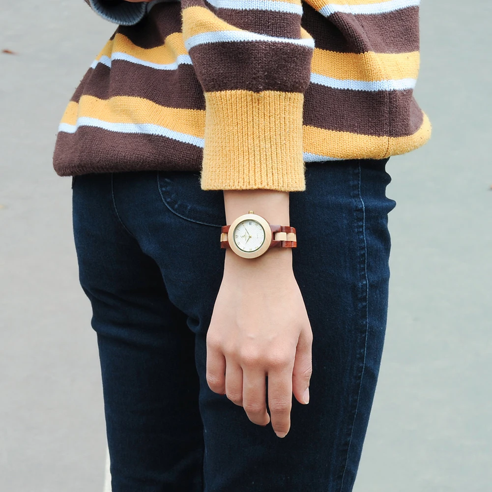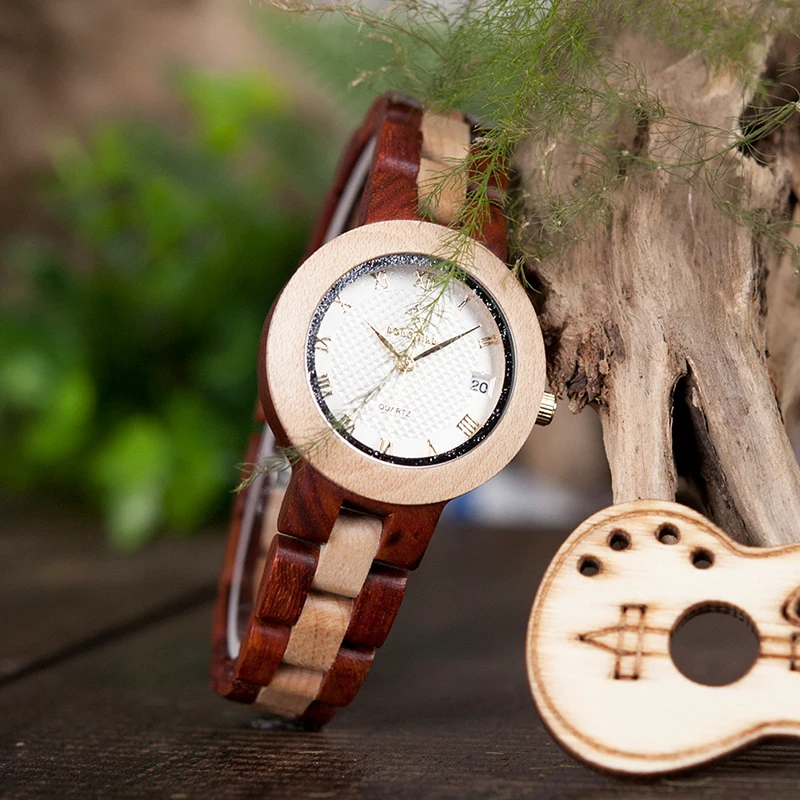 Часы женские кварцевые с деревянным ремешком, элегантные модные с двумя цветами, с отображением недели, с подарочной коробкой, M19