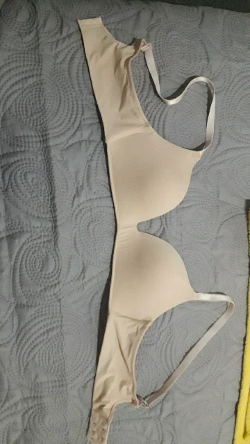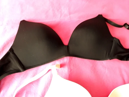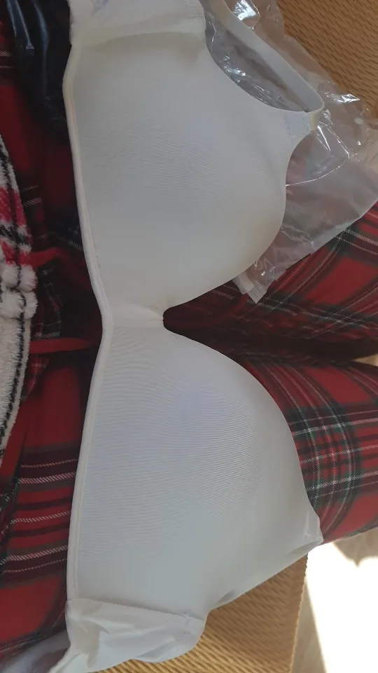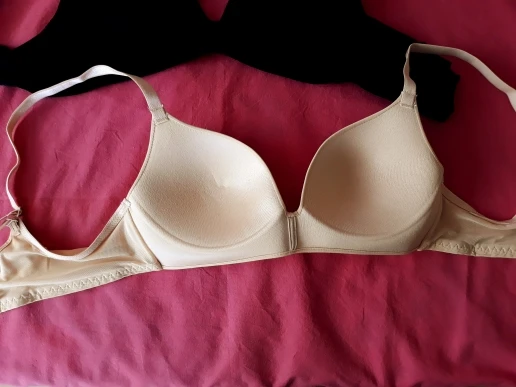 Второй раз заказываю, но в этот раз пришло качество - откровенный ужас. Фото сделала на сером покрывале с белым рисунком, чтобы было понятно, что белый цвет точно нельзя брать. Лямки - как не от него, молочного цвета, чашечка - серо-грязная