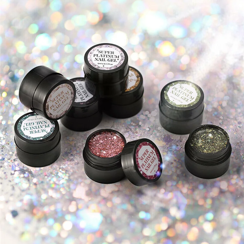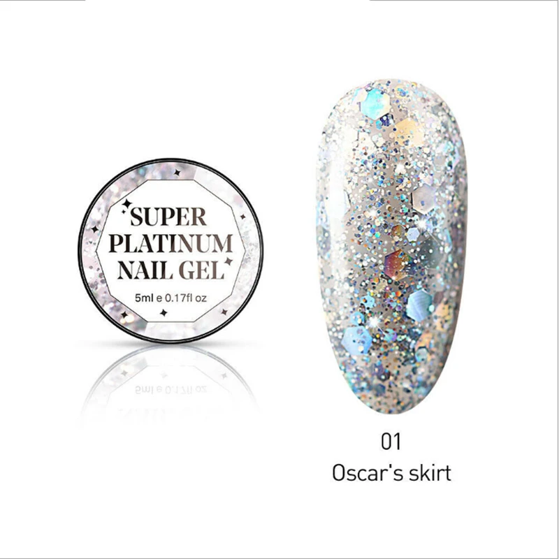 Гель-лак для ногтей Glitter УФ-гель для ногтей Super сверкающий Платиновый, Полупостоянный, гибридный гвоздь