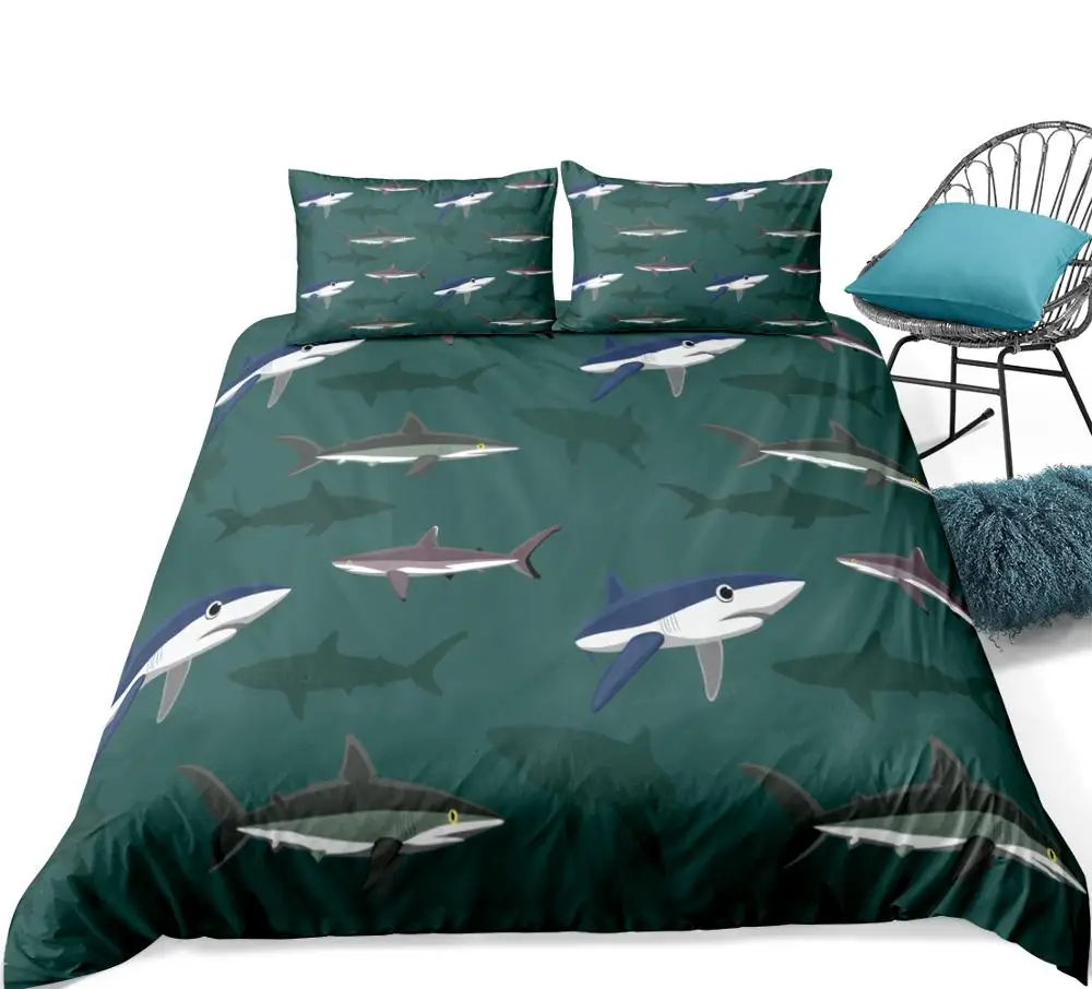 Комплект постельного белья Green Shark для детей, пододеяльник с изображением морских животных, для мальчиков, рыбок, 3D цифровая печать, 100% микрофибра