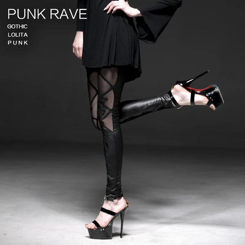 Женские леггинсы, готические, сексуальные, модные, матовые, ламинированные, сетчатые, с кружевом