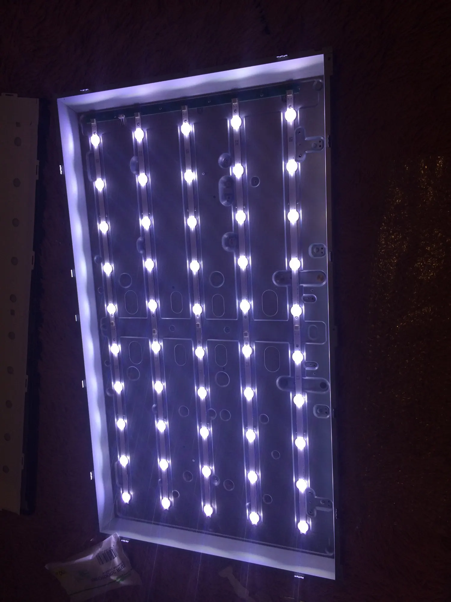 Посылка пришла в картонной коробке, целая и невредимая. Подсветка состоит из 10 пластин со светодиодами, очень яркие. Подошло к телевизору идеально.