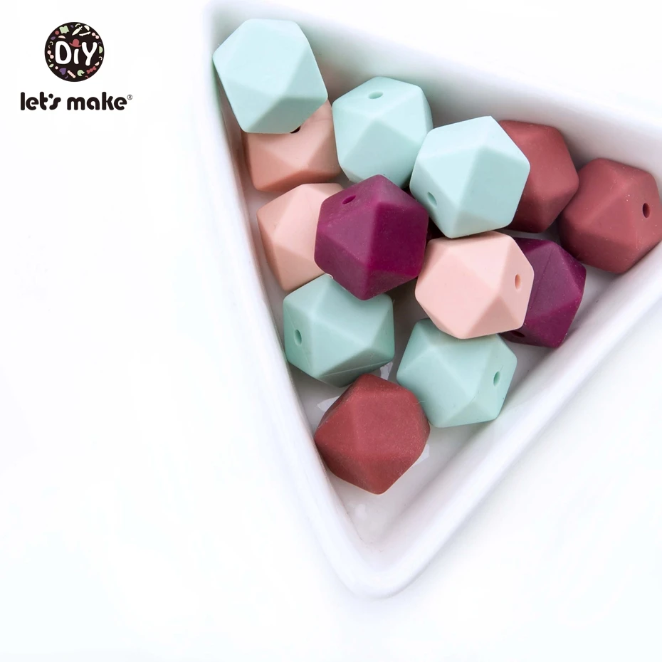 20 шт., шестигранные силиконовые бусины для прорезывания зубов, 14 мм