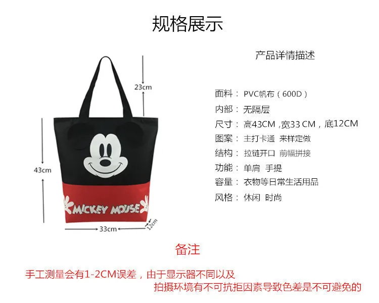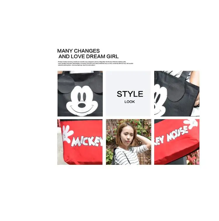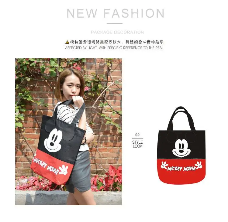 Женская Холщовая Сумка на плечо с мультипликационным изображением Диснея Микки Мауса, портативная мультяшная сумка большой вместимости для покупок, сумки