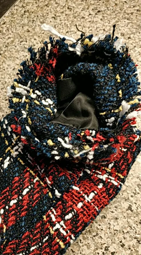 Подклад у блейзера кривой. В рукавах перекошен, из-за этого рукава перекручены. По спине подклад короче самого блейзера, поэтому внизу блейзер собирается и загибается! И, конечно же, это не твид!! Я разочарована