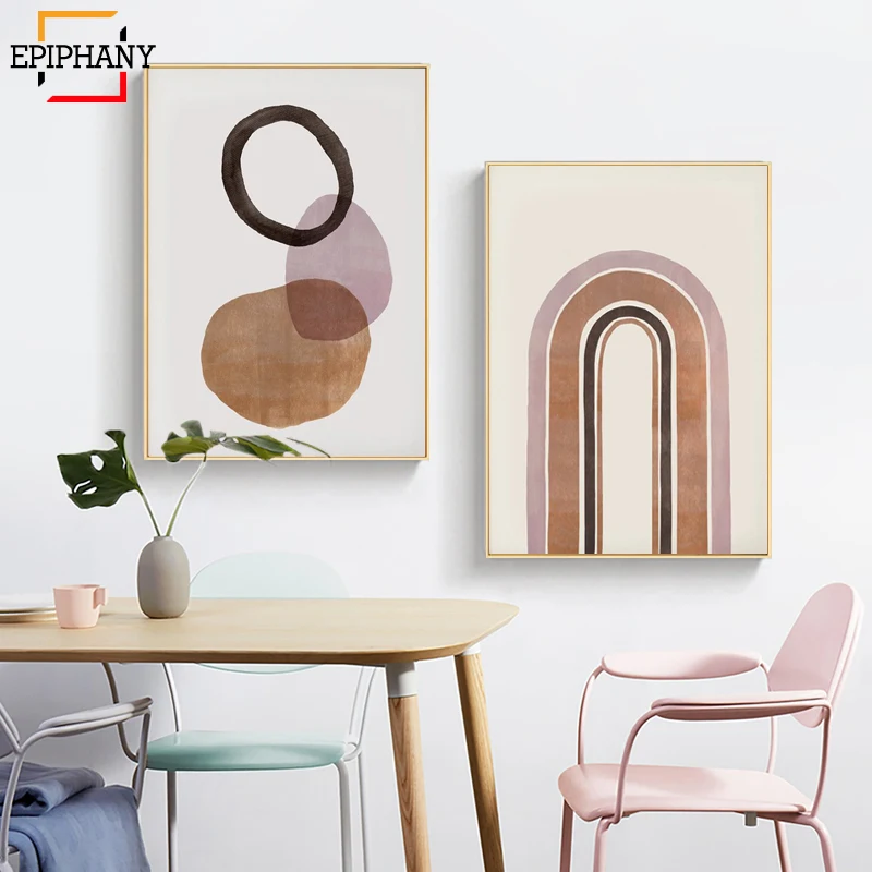 Настенная картина, абстрактный настенный постер розового и серого ц...