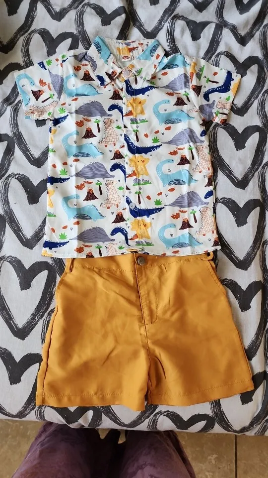 Детский комплект одежды, рубашка с коротким рукавом и принтом динозавров