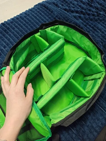 Жесткие сепараторы, которые хорошо держат все аксессуары и самые красивые, которые у меня были до сих пор. Единственным недостатком, который я поставил лично, является то, что у него нет закрытого внешнего кармана, чтобы нести ключи и монеты, когда я иду на сеанс, но рюкзак невероятен