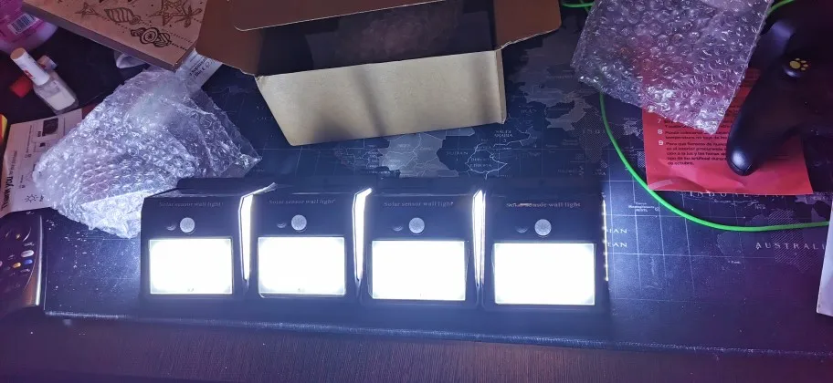 Они идеальны, они поставляются в простой, но хорошо защищенной упаковке, каждый со своим твердым чехлом, а в свою очередь с защитой от пузырьков внутри, каждая коробка поставляется с солнечным светом, 1 винт, 1 таруго, 1 руководство, руководство очень простое для понимания, освещение, Поскольку они достаточно маленькие, вам не придется одевать их, так как они достаточно прочные, у них есть кнопка питания, которая во время нажатия на свет включается в течение 1 секунды, и они уже активны, Я начал тестировать их в комнате с низким освещением, и датчик движения работает очень хорошо, нажав снова и нажав кнопку, свет не включится, и это означает, что они полностью выключены, поэтому вы не тратите батарею на свой перевод, я очень рад, мне они очень понравились, Большое спасибо.