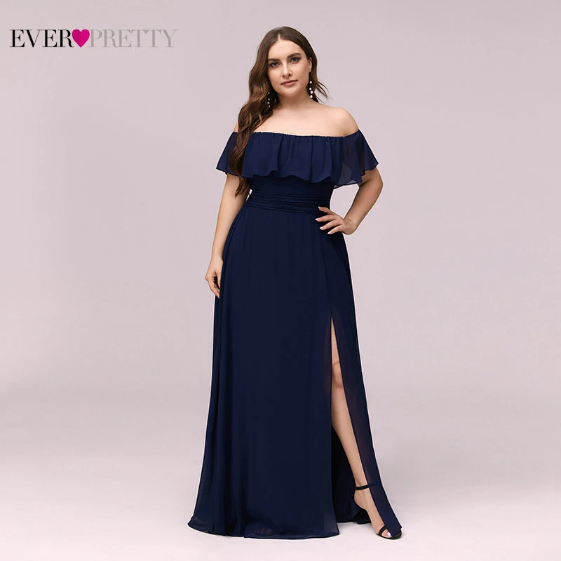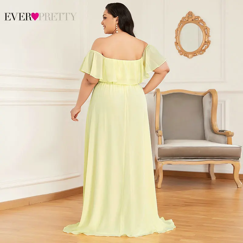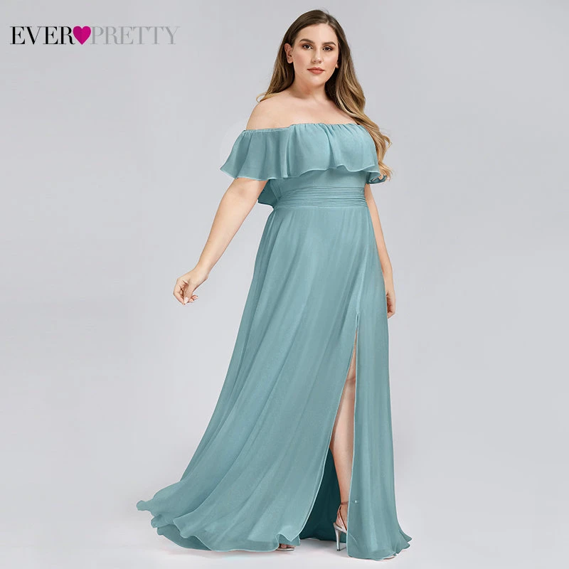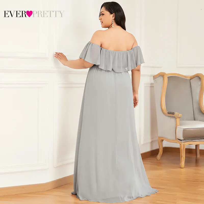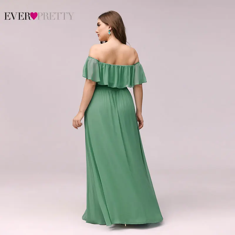 Женское платье подружки невесты А-силуэта с открытыми плечами и оборками