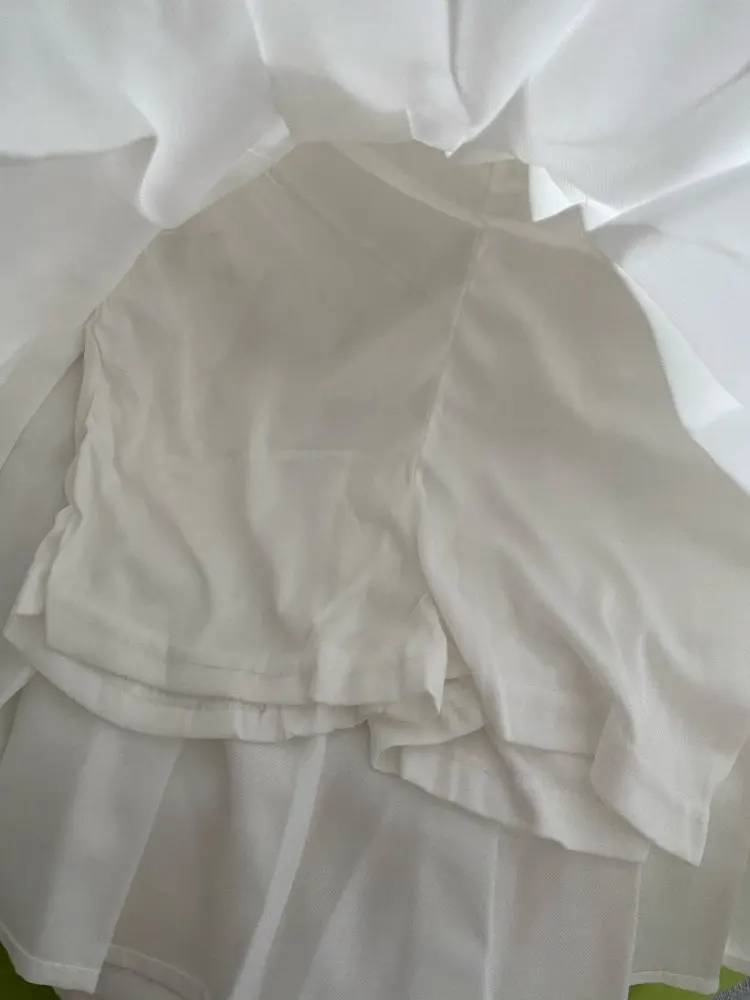 Юбка пришла очень быстро-чуть помятая,но это совсем не страшно,нитки не торчат,в самой юбке есть шорты(вообщем заказывайте не пожалеете)