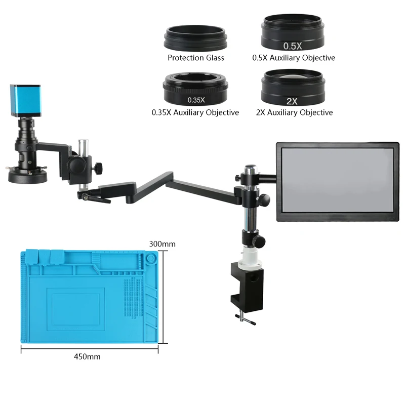 Вращающийся на 2021 градусов Штатив с шарнирным зажимом и зумом на градусов Объектив SONY IMX307 с автофокусом промышленный HDMI измерительный видеомикроскоп камера