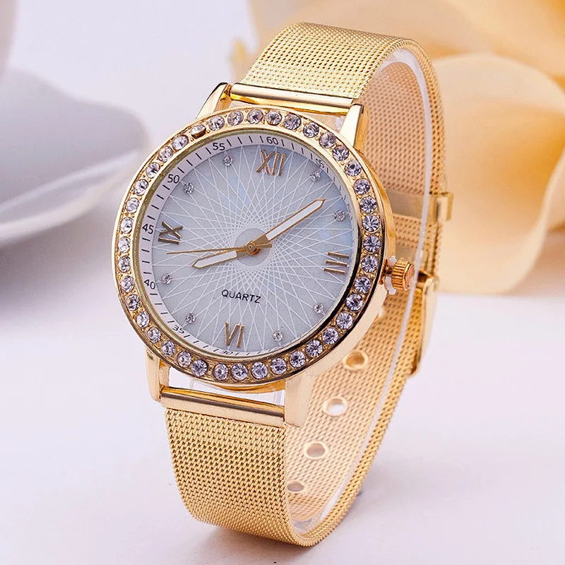 Часы наручные женские кварцевые аналоговые, простые деловые роскошные стразы из нержавеющей стали, цвет розового золота, 2019
