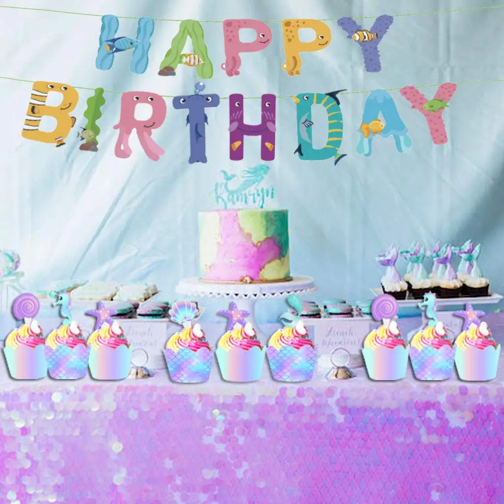 Русалки кекс обертка и Топпер детский душ или день рождения украшения
