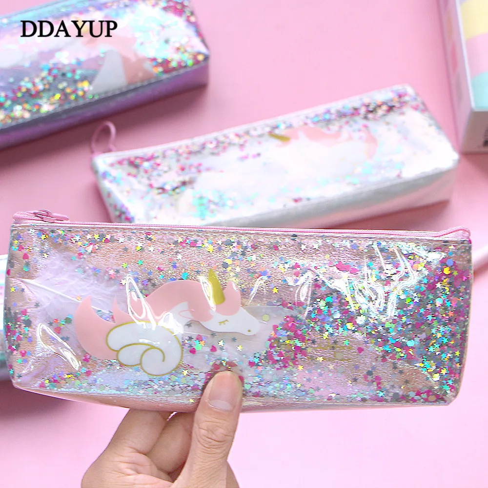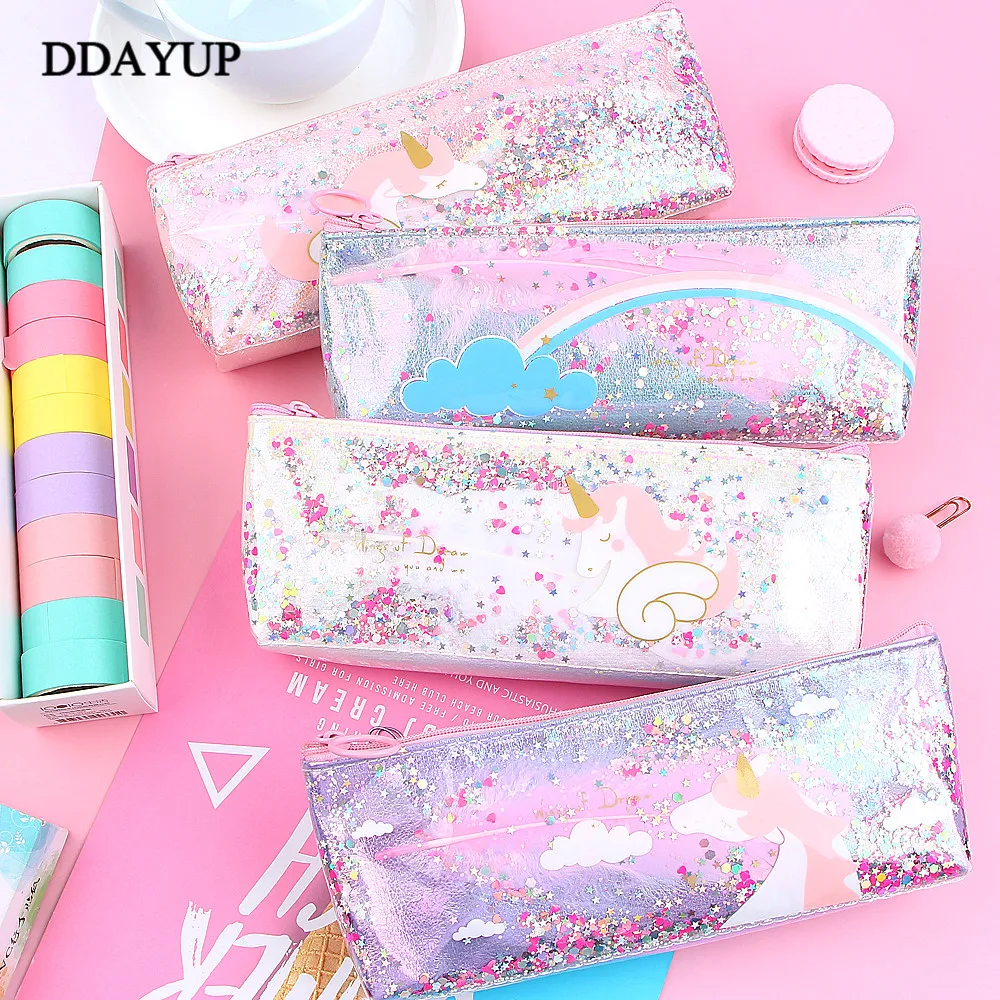 Чехол-карандаш в виде единорога милый кавайный блестящий чехол-карандаш из искусственной кожи чехол для школьной ручки принадлежности Пенал школьная Коробка Чехол для карандашей канцелярские принадлежности