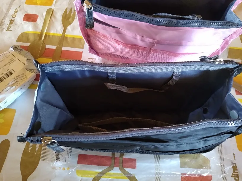 Выглядит очень практично, как на фото, подходит практически ко всем моим сумкам