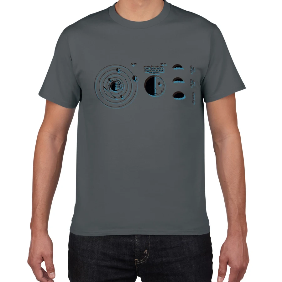 Планетарные траектории солнечной системы Футболка мужская физика Астрономия научный Вентилятор 100% Мужская хлопчатобумажная футболка Теория большого взрыва