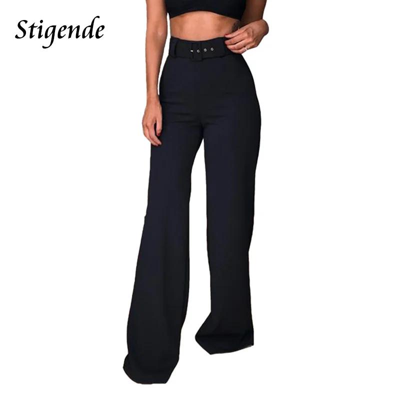 Женские прямые брюки с высокой талией, с широкими штанинами, однотонные, повседневные, брючный пояс